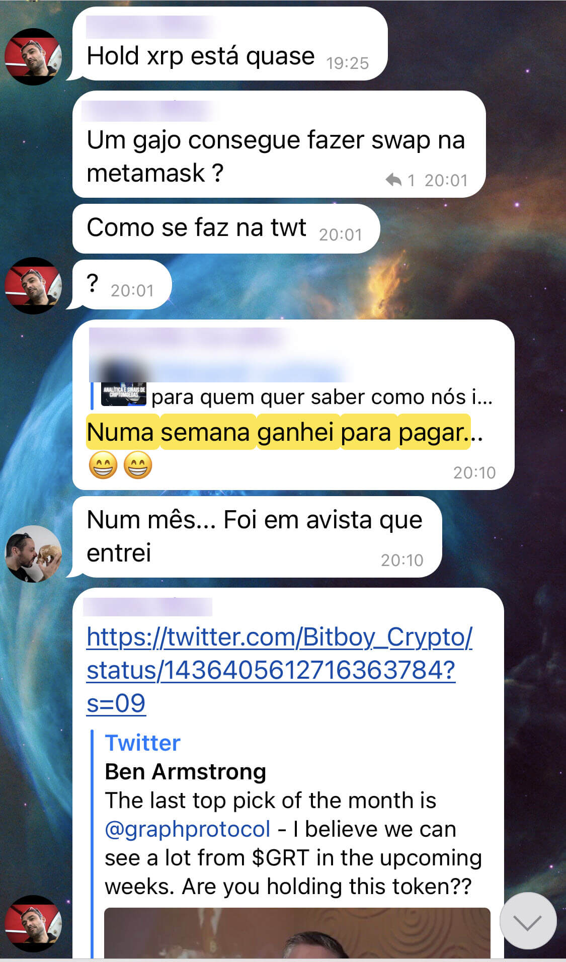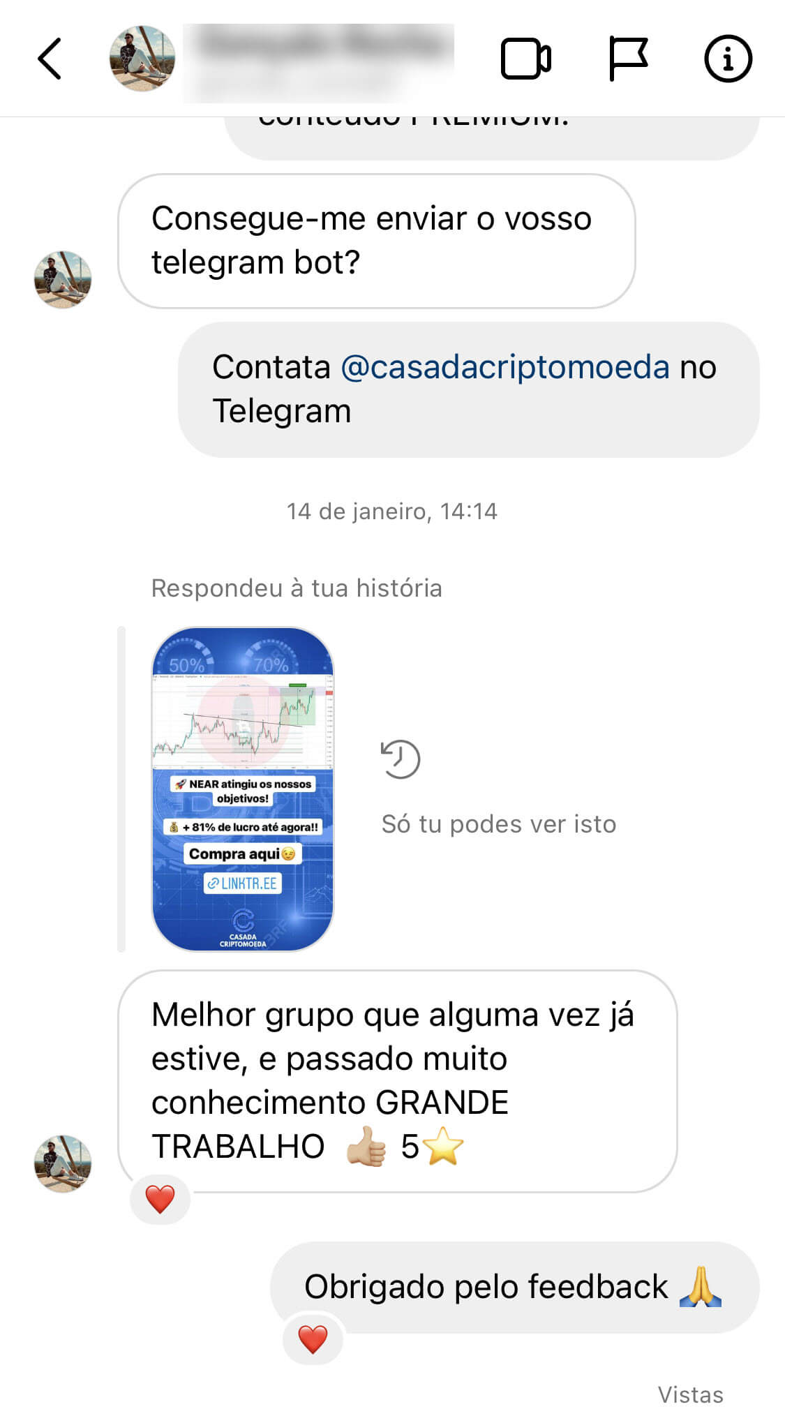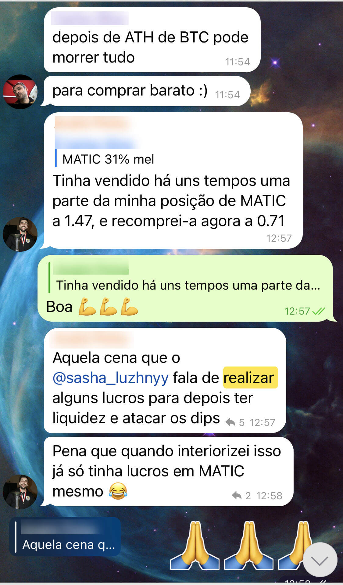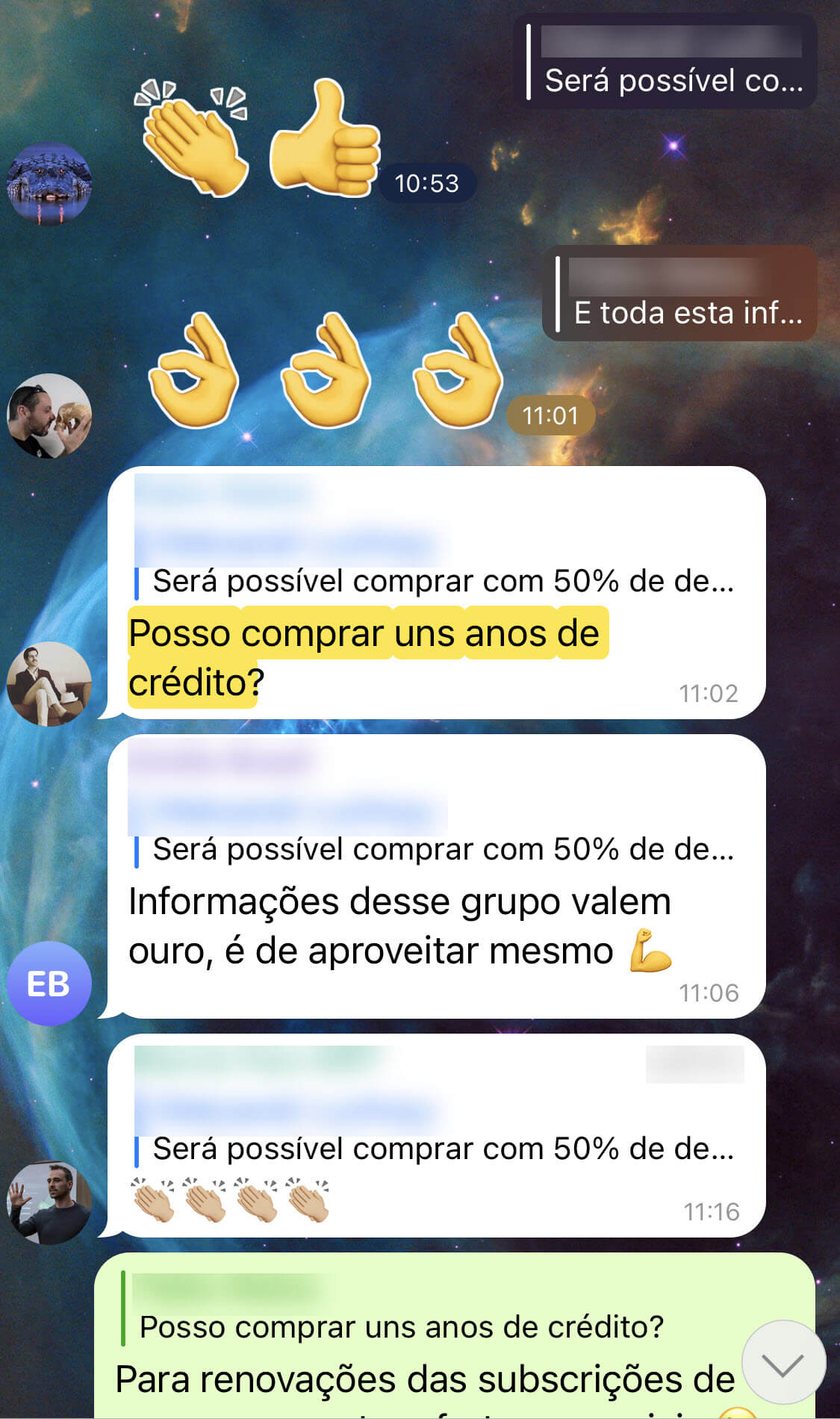 Neste grupo poderás interagir com outros participantes PREMIUM, tal como seguir os nossos investimentos, negociações e portfólio em tempo real.